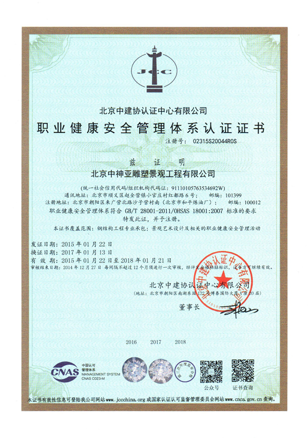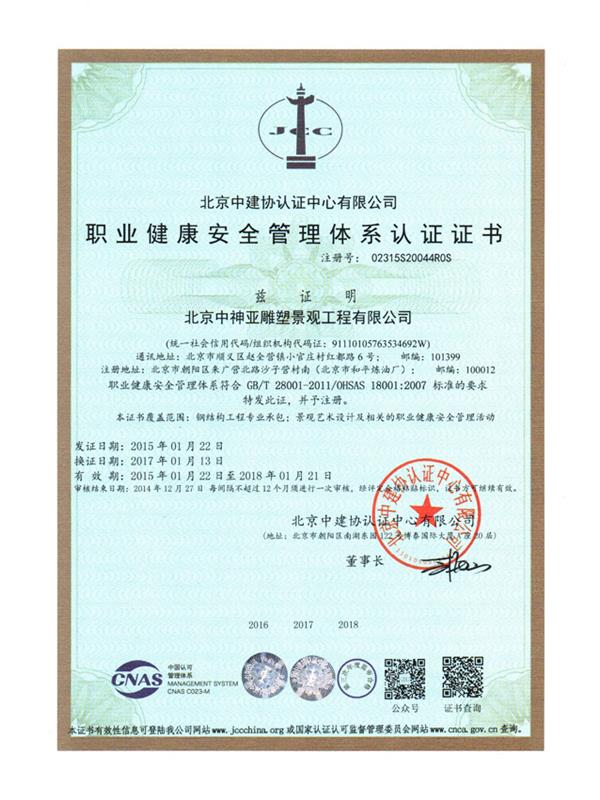 職業健康安全管理體系認證證書