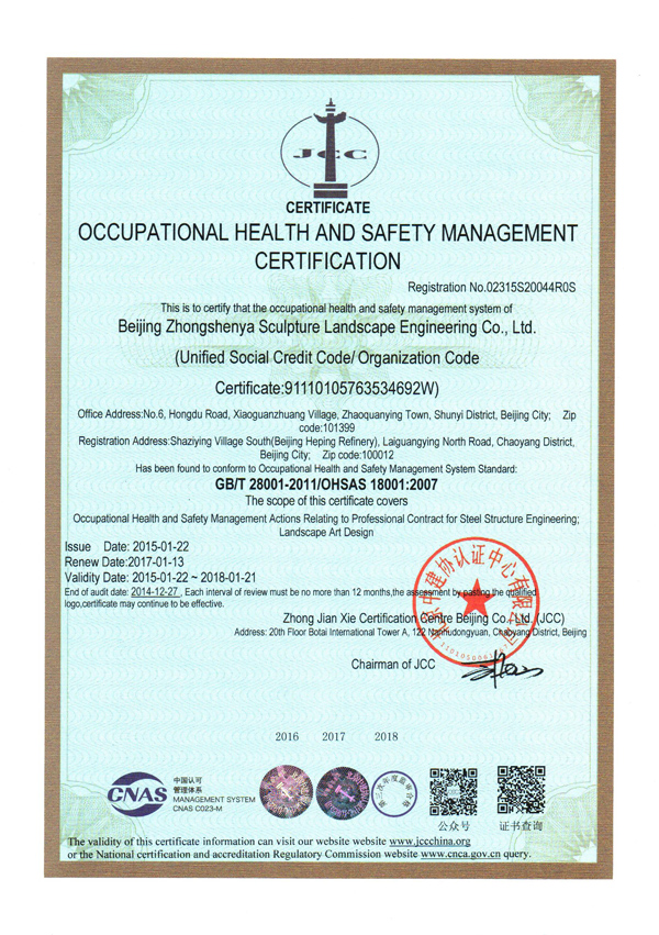 職業健康安全管理體系認證證書英文