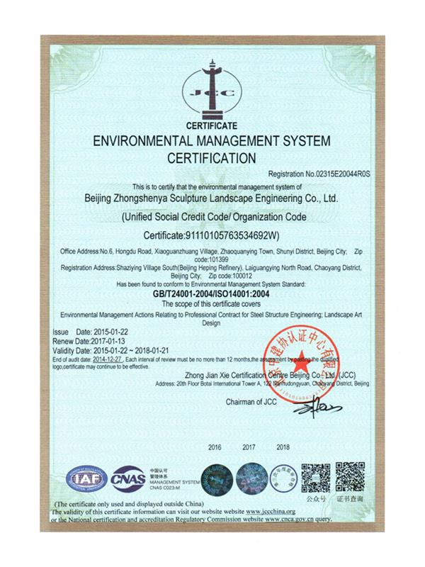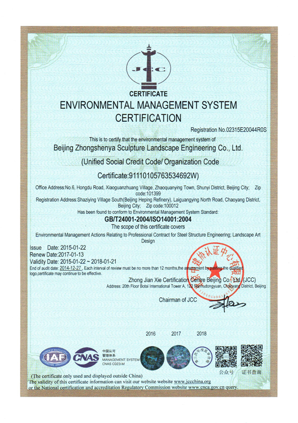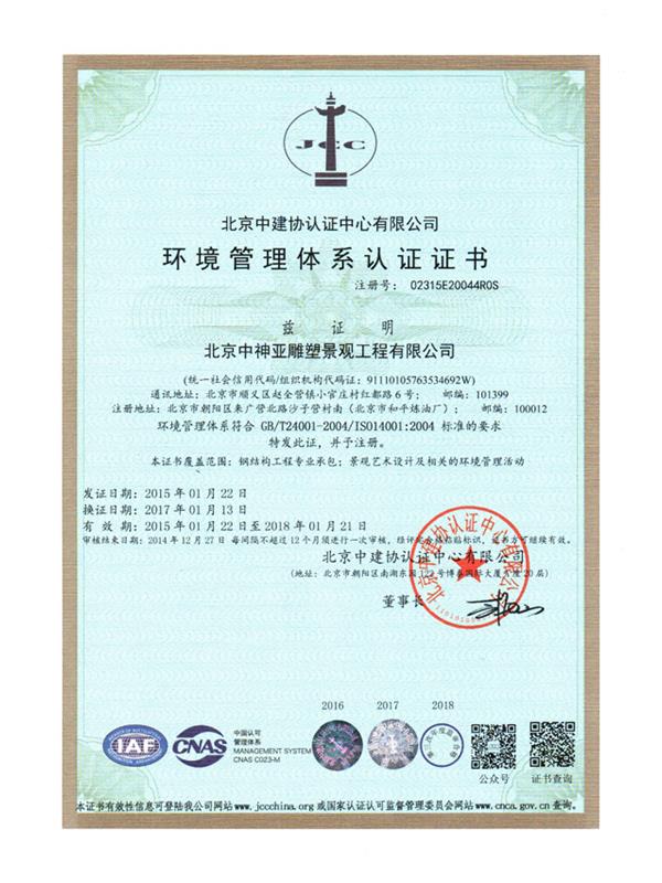 環境管理體系認證證書