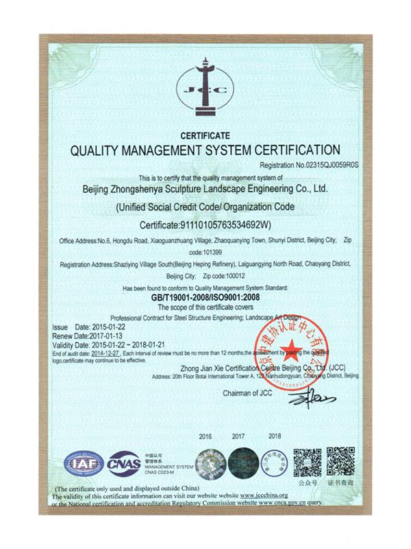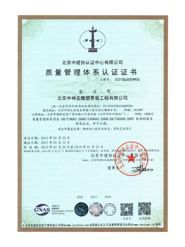 質量管理體系認證證書